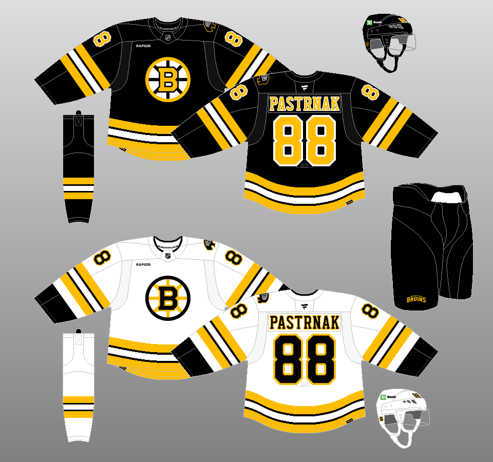 2025-present Apparently, the Bruins' centennial look was so popular, that they decided to bring back modernized versions of their mid-1970s through mid-1990s uniforms, making a few tweaks along the way. |